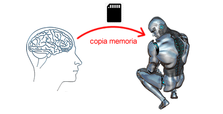 Secondo alcuni, la singolarità potrebbe essere ottenuta anche tramite il trasferimento di una copia della memoria umana in un cervello elettronico. Tuttavia, questa ipotesi fantascientifica aprirebbe molte questioni etiche sulle differenze tra l'essere e la sua copia.