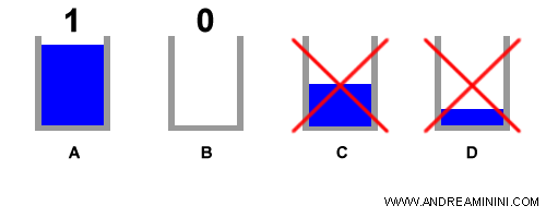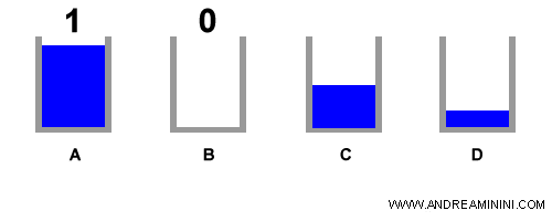 Posso affermare che il bicchiere A è pari a 1 e il bicchiere B è pari a 0.