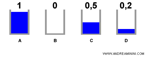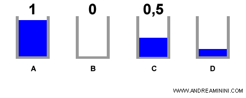 Grazie alla logica fuzzy posso affermare che il bicchiere C è pieno con un valore di verità pari a 0,5.