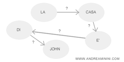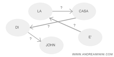 Tuttavia, l'ordine di presentazione delle parole potrebbe cambiare, ad esempio a causa di un'esclamazione iniziale, di un errore di ortografia, di una punteggiatura sbagliata, ecc. Diventa quasi impossibile prevedere a priori ogni singolo caso in una grande tabella IF-THEN. Una soluzione alternativa può arrivare dalle reti neurali. Come già detto, ogni frase è composta da un insieme di parole e queste possono essere rappresentate in un grafo sotto forma di nodi ( neuroni ). La funzione di ogni singola parola può essere assoluta oppure relativa, in quest'ultimo caso è in relazione con le parole vicine. La sequenza delle parole può, pertanto, essere rappresentata da archi ( sinapsi ).