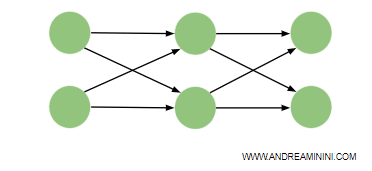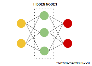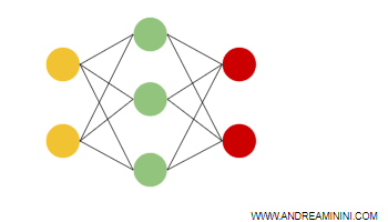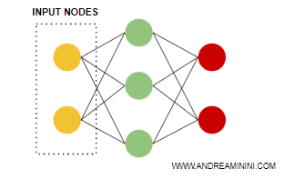 - Nodi di entrata ( input nodes ). Sono i nodi di input. Si trovano a sinistra, all'ingresso della rete neurale. Sono utilizzati per introdurre i dati di input.