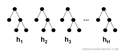 Nota. Ogni ipotesi è costruita con un algoritmo di boosting ed è diversa dalle altre. Ad esempio, ogni ipotesi è un albero decisionale diverso perché è stato costruito usando parametri differenti.