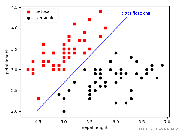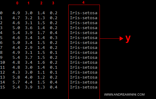 - da 1 a 50 sono esempi con etichetta Iris-setosa