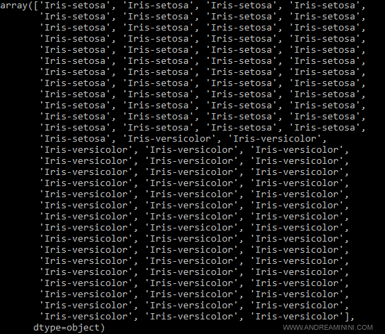- da 51 a 100 sono esempi con etichetta Iris-Versicolor