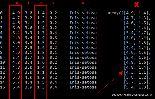 La colonna delle etichette è associata all'indice 4 perché la prima colonna comincia con 0.