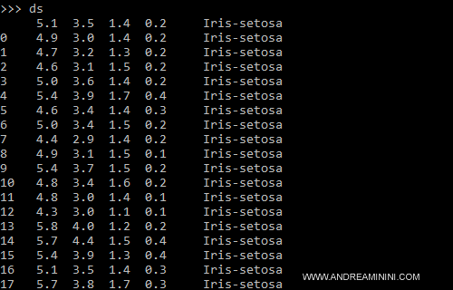 Ora i dati del dataset sono salvati nella variabile ds.