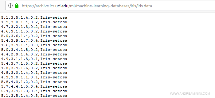 Nota. Il modello Iris è una sorta di hello world del machine learning. E' un dataset di cui ho già parlato dettagliatamente in un esempio di Tensor Flow al quale rimando per ogni ulteriore spiegazione e approfondimento.