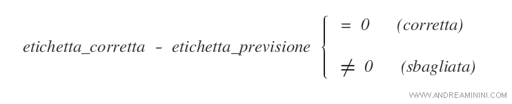 Se la previsione è sbagliata, la differenza etichetta_corretta - etichetta_previsione è diversa da zero.