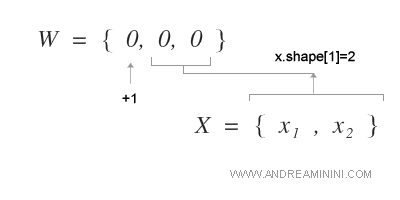 Pertanto, il vettore dei pesi W è un array composto da tre elementi.