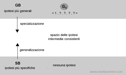Lo spazio delle ipotesi GB è un insieme composto da n ipotesi (H). Formalmente è una disgiunzione logica di n ipotesi H.