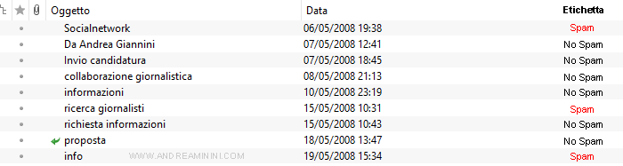 Le email spam sono riconosciute, separate dalle altre e cestinate automaticamente.