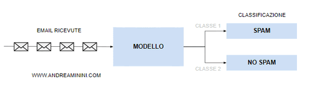 Esempio. Un esempio pratico di classificazione binaria sono i filtri anti-spam che associano a ogni email in entrata una etichetta "spam" o "no-spam".