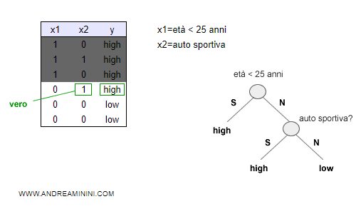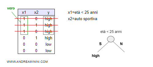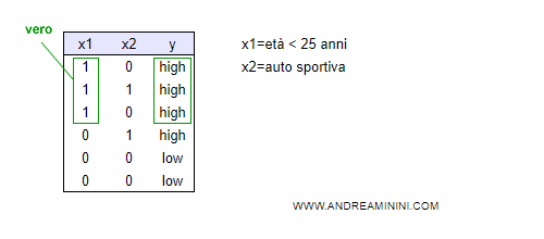 A partire da un insieme di training ( dataset ) individuo il sottoinsieme di esempi in cui un attributo X ( es. X1 ) è sempre vero ( o sempre falso ).
