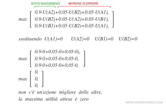 - L'utilità di ogni stato è uguale all'utilità attesa delle azioni successive da quel punto in poi, fino al raggiungimento dell'obiettivo finale.