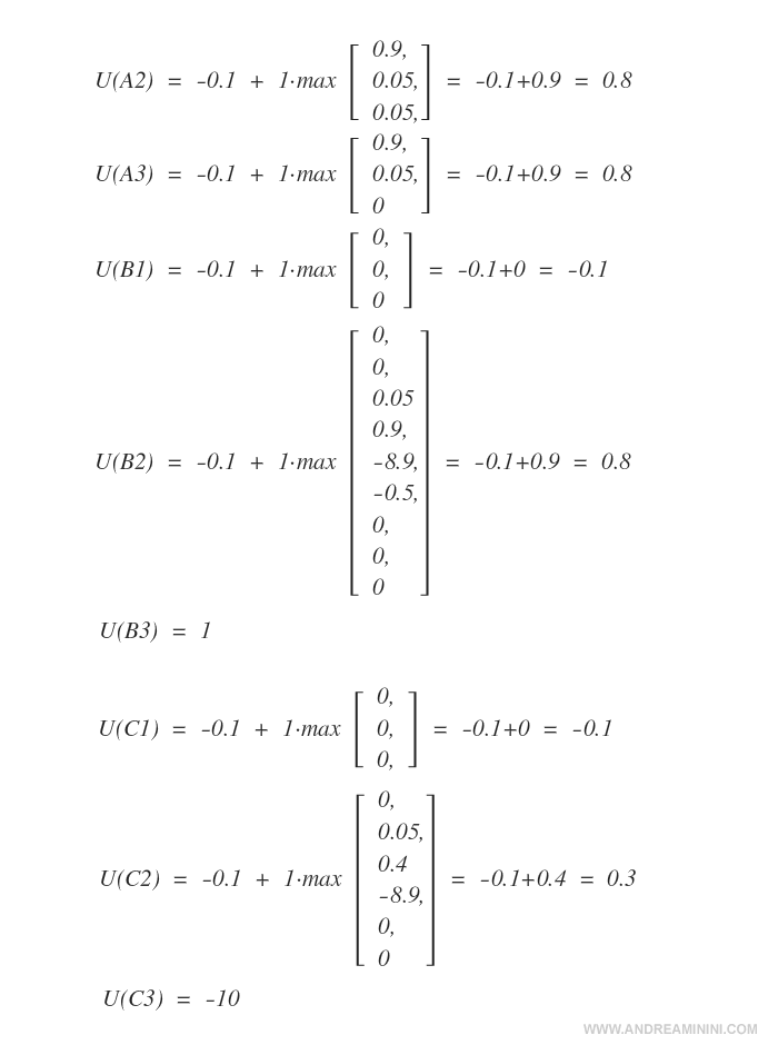 Nota. Nella prima iterazione avevo assunto dei valori di default uguali a zero. Nella seconda iterazione, invece, le utilità attese sono diverse. Ogni iterazione propaga l'informazione aggiornata alla successiva iterazione.