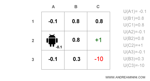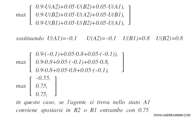 L'utilità attesa di ogni stato (s) è calcolata con l'equazione di Bellman.
