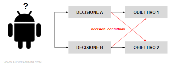 Tuttavia, in caso di incertezza o di conflitti tra obiettivi differenti, l'agente si blocca perché non riesce a prendere una decisione.