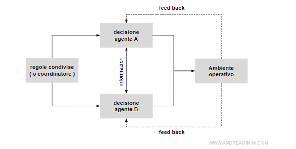 Un'altra soluzione possibile è l'adozione di regole di comportamento ( rules ) condivise tra gli agenti o la presenza di un'autorità centrale di controllo e coordinamento ( super agent ).