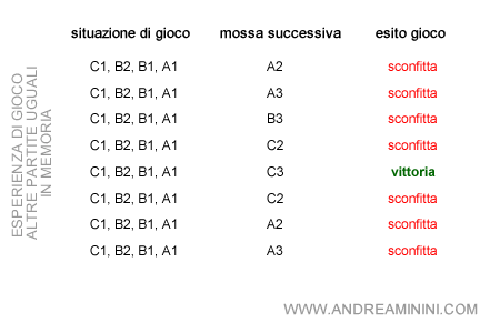Quando si trova nella stessa situazione, si limita a ripetere le mosse vincenti e a non ripetere quelle sbagliate