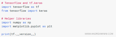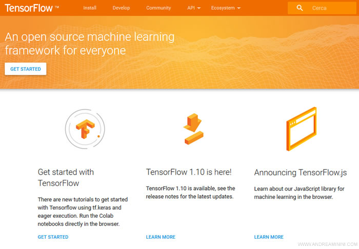 Il package TensorFlow si scarica direttamente dal sito ufficiale www.tensorflow.org