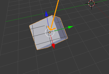 Un altro modo per muovere l'oggetto su Blender consiste nel cliccare con il tasto di sinistra del mouse nel cerchio bianco sull'oggetto in questione e, mantenendo premuto il tasto del mouse, muovere l'oggetto con il mouse verso qualsiasi direzione fino a trovare la giusta collocazione dell'oggetto nello spazio.