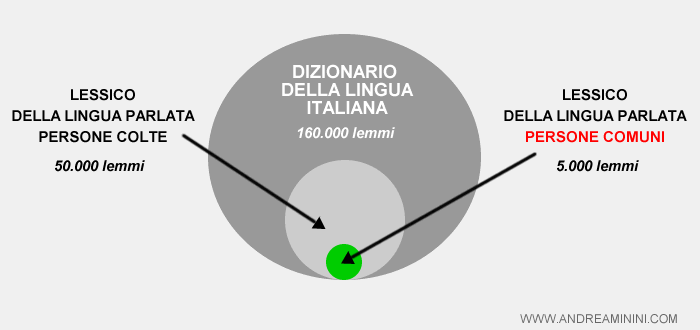 Nota. Le persone più colte possono arrivare a usarne anche cinquantamila durante un colloquio. Si tratta però di target particolari e di nicchia.