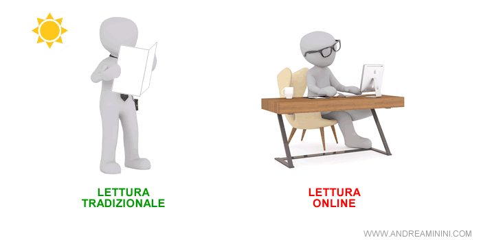 La lettura online è molto più difficoltosa perché ha bisogno di elettricità e di un collegamento a internet.