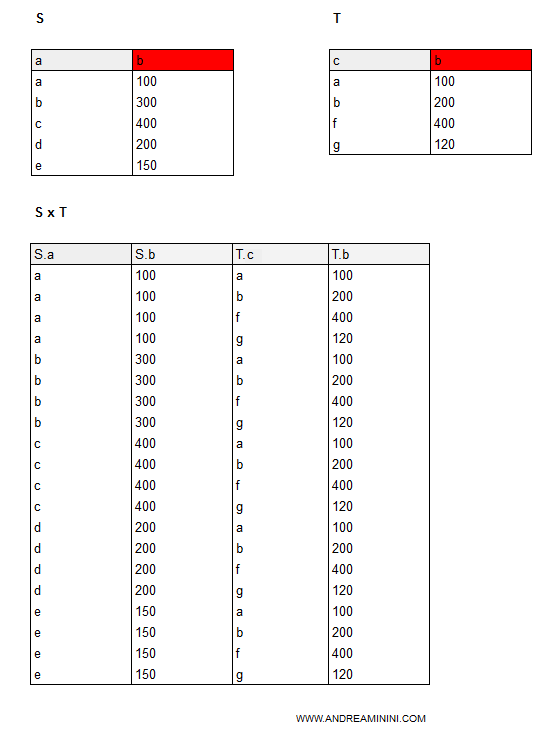 Nota. Nel caso del prodotto cartesiano non è necessario che le tuple siano omogenee. Pertanto, non è richiesta la compatibilità rispetto all'unione.