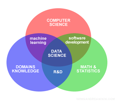 Pertanto, la data science non va confusa con la programmazione (sw development), né con le attività di ricerca e sviluppo (R&D) e nemmeno con il machine learning. E' l'insieme di tutto questo.