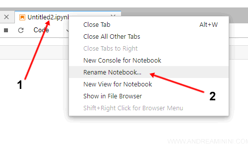 Poi seleziono la voce rename Notebook.