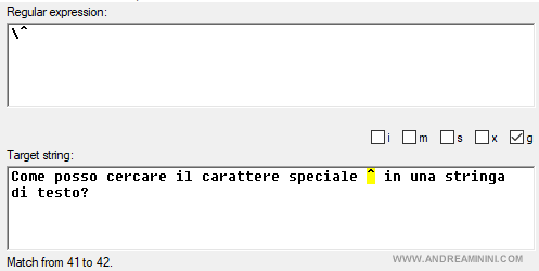Nelle regular expression si possono utilizzare caratteri speciali e caratteri normali. Spesso uno stesso carattere può essere usato in entrambi i modi.