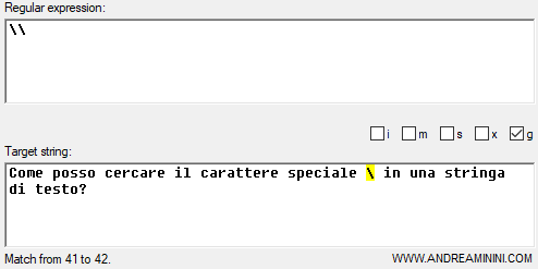 Il carattere backslash è molto importante nelle espressioni regolari perché ha una duplice funzione: