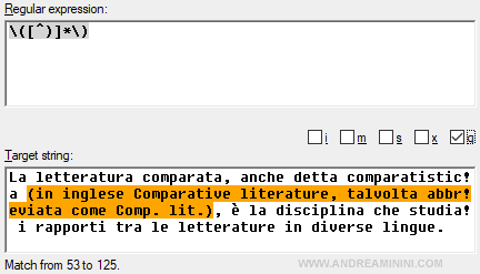 Per questo motivo in uno script php preferisco usare la seconda regex quando devo eliminare il contenuto tra parentesi tonde.
