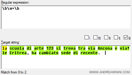 Per trovare le parole di un testo tramite un'espressione regolare ( regex ) è molto utile combinare i terminatori W e B.
