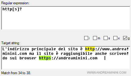 In questo caso si tratta di un set di caratteri [] composto soltanto dal carattere "s" che può esserci oppure meno. La stringa iniziale "http" è invece necessaria per il matching.