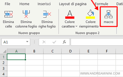 Sotto il pulsante appare il nuovo nome (macro2) e la nuova icona grafica (un dischetto).
