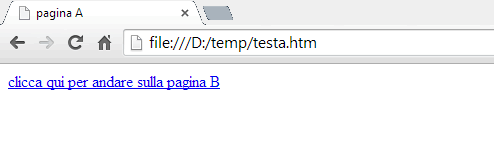 Nell'attributo HREF del tag <A> ho indicato l'indirizzo di destinazione della pagina B ( pagina-b.htm ).