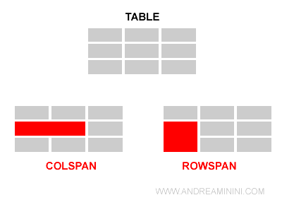Gli attributi rowspan e colspan mi permettono di personalizzare la formattazione delle tabelle.