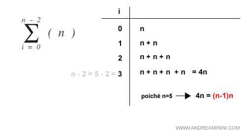 Quindi per calcolare il numero di volte che viene eseguito il ciclo interno devo calcolare la seguente sommatoria.