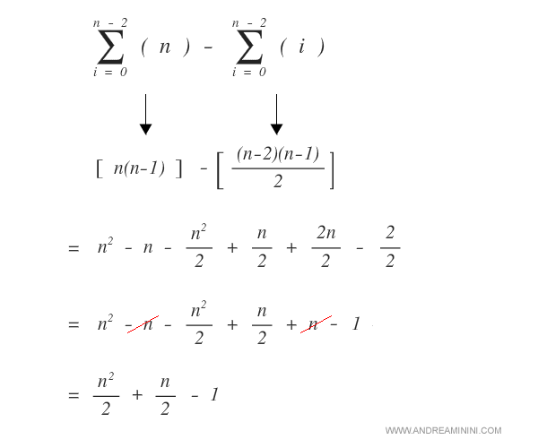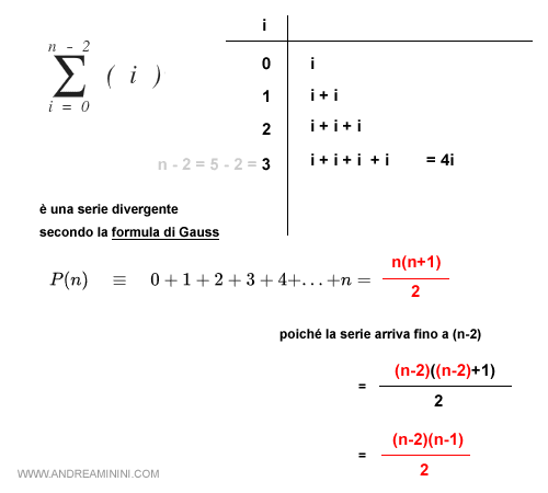 La seconda componente viene eseguita (n-2)(n-1)/2 volte secondo la formula di Gauss delle serie divergenti.