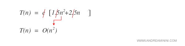 Per calcolare la complessità dell'algoritmo devo prendere in considerazione l'elemento più significativo ossia n2 senza considerare il coefficiente ( 1.5 ).