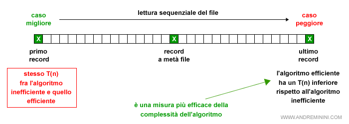Faccio un esempio pratico, un algoritmo cerca sequenzialmente un dato X in un file composto da 1000 record, partendo dal primo all'ultimo.