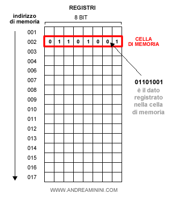 Ogni locazione è associata in modo univoco a un indirizzo di memoria che permette al processore di individuarla, leggere o scrivere un dato all'interno della cella.