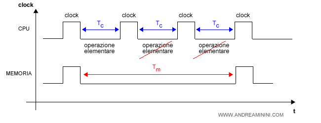 I tempi di accesso, lettura e scrittura sugli indirizzi di memoria ( Tm ) sono più lunghi rispetto al tempo di esecuzione delle operazioni da parte della CPU ( Tc ).