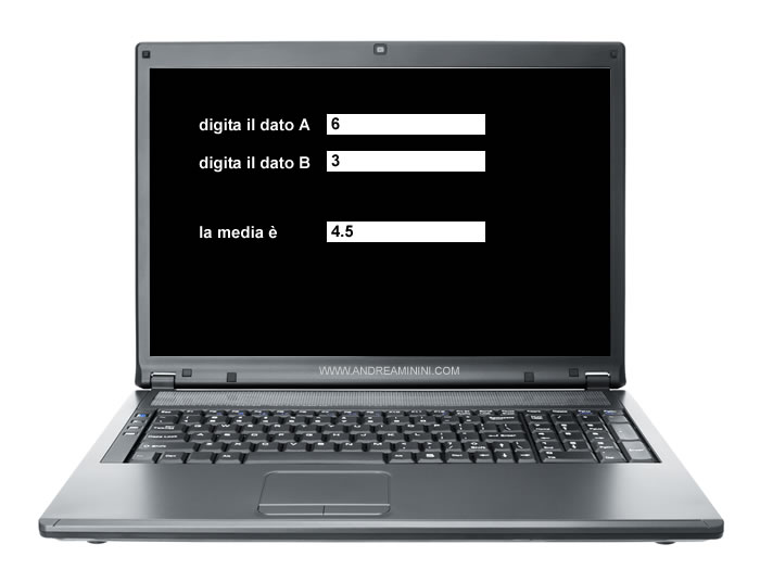 - Dati in output. Sono i dati in uscita di un algoritmo, ossia il risultato dell'operazione. Possono essere stampati a video, su una stampante oppure salvati su un file o trasmessi via modem. Ad esempio, nell'algoritmo precedente la stampa della variabile Media è il dato di output.