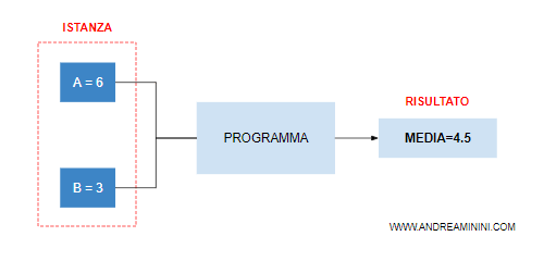 Cos'è l'istanza? Un'istanza di un problema è un insieme di dati in input che soddisfano i vincoli imposti dalla definizione del problema. Ad esempio, i dati in input A=6 e B=3 sono un'istanza. I dati A=10 e B=5 sono un'altra istanza. E così via.