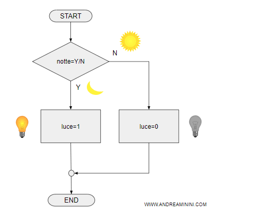 Viceversa, se non la rileva ( notte=N ) spegne le luci ( luci=0 ).