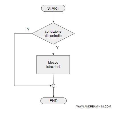 Un esempio pratico. In questo diagramma ho inserito una struttura di controllo. Il blocco di istruzioni viene eseguito soltanto se la condizione di controllo si verifica ( Y ). Se non si verifica ( N ) il blocco non viene eseguito.