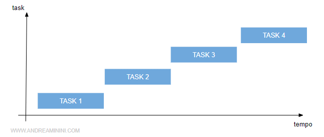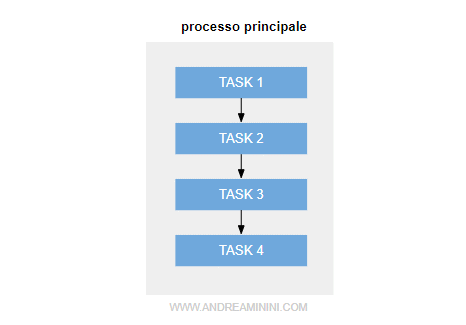 Un programma tradizionale esegue le operazioni o task in sequenza, dall'inizio alla fine.