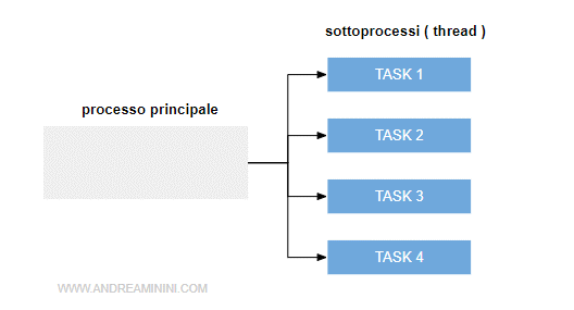 Il programma principale esegue contemporaneamente alcuni task come sottoprocessi ( thread ).